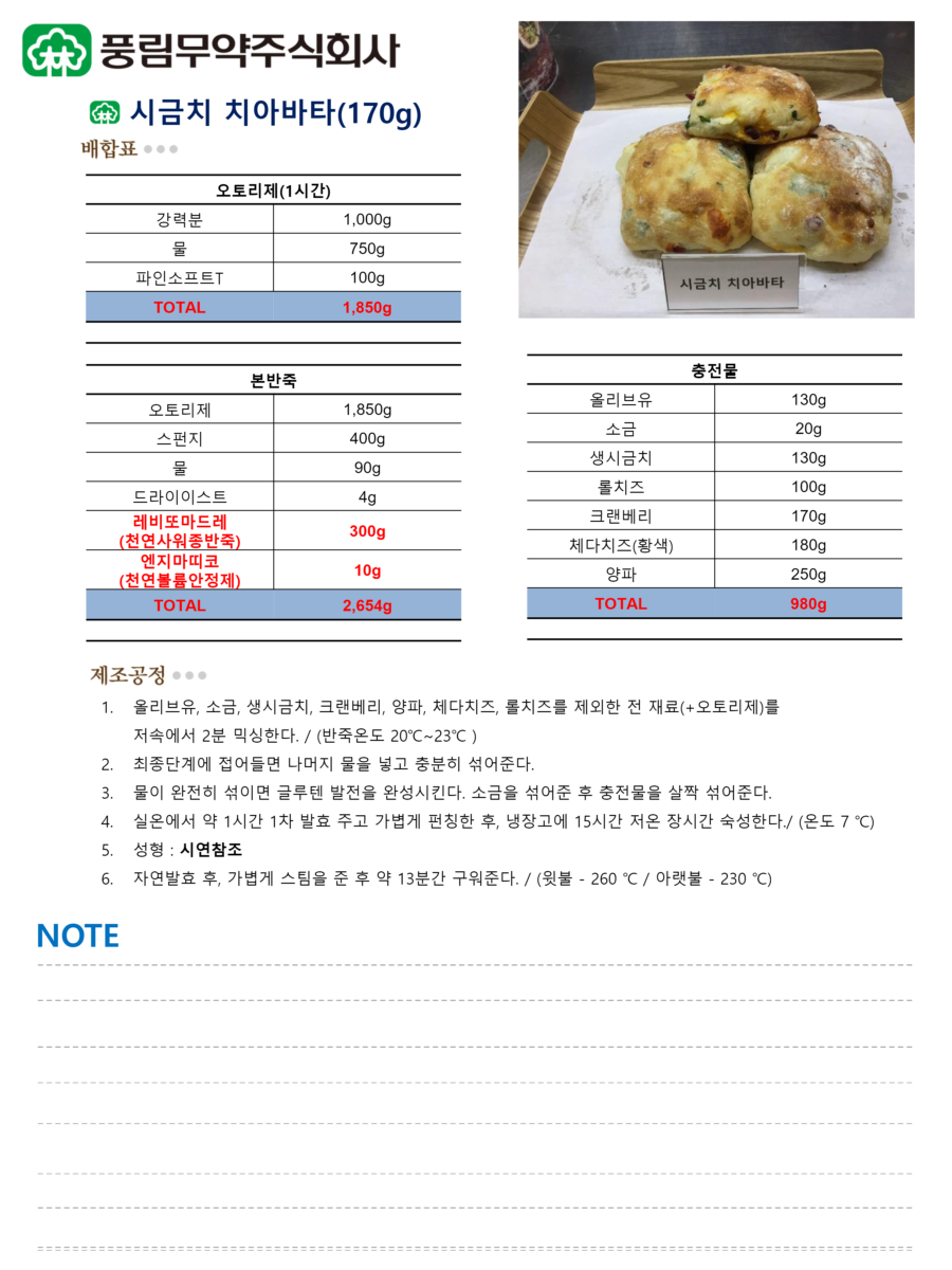 포카치아, 시금치 치아바타, 먹물바게트, 씨리얼, 뺑드 세이글