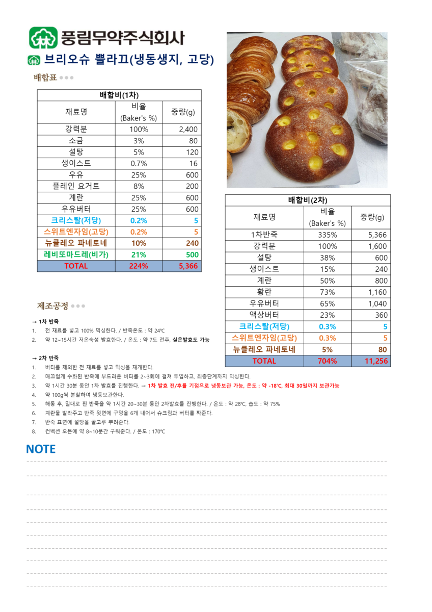 3. 브리오슈 쁠라끄(냉동생지, 고당)