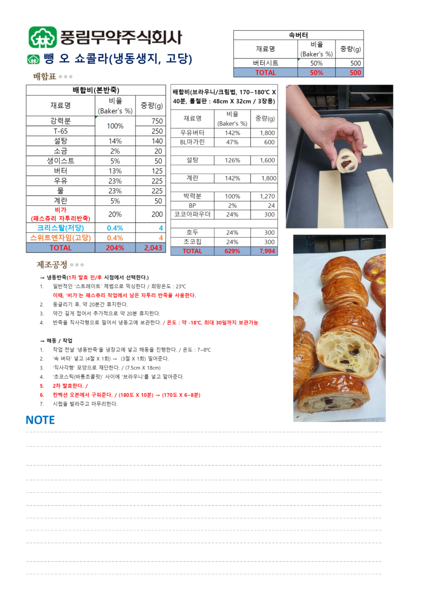 5. 뺑 오 쇼콜라(냉동생지, 고당)