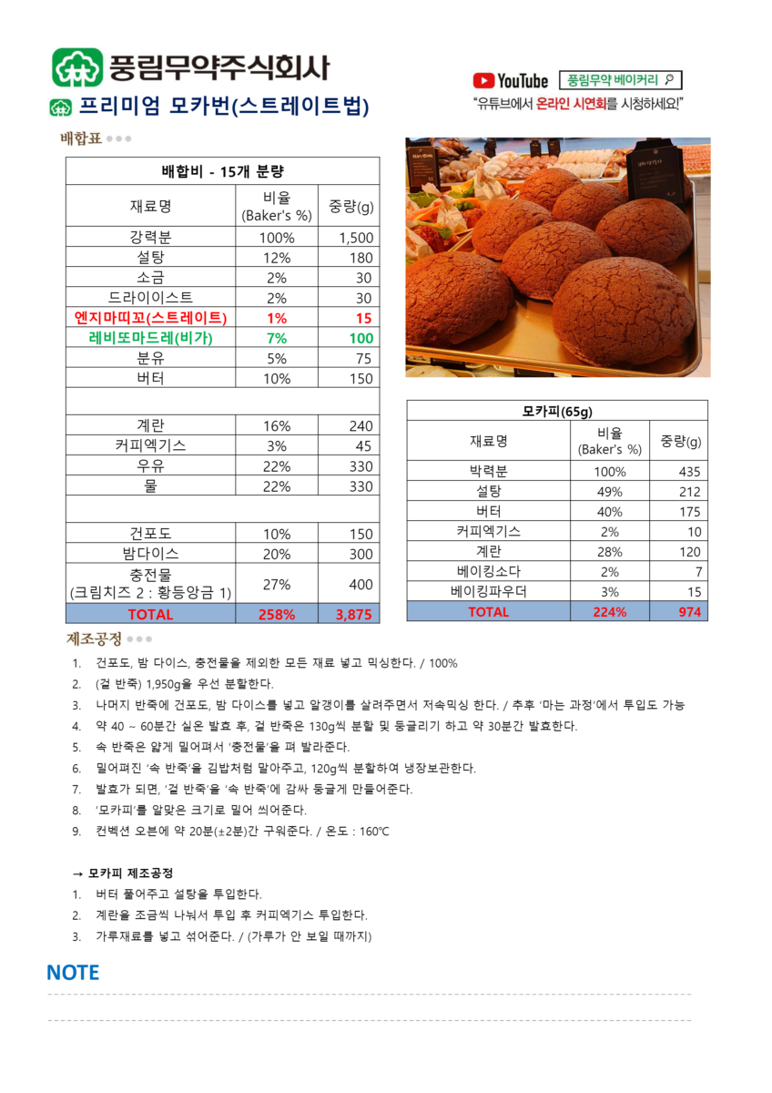 프리미엄 모카번(스트레이트법) / 풍림무약 온라인시연회(20210708) – 2부 / 장길찬 제과기능장(빠다롤 더 테라스 / 뺑 프랑스)