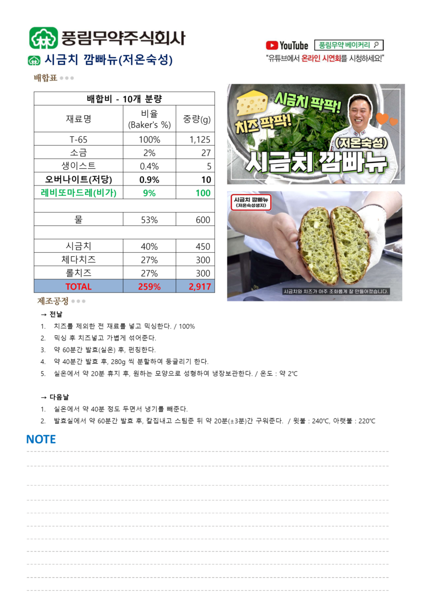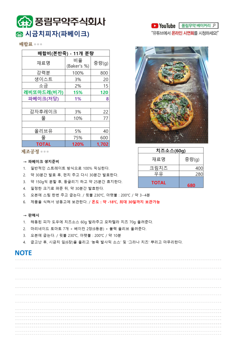 시금치피자(파베이크) / 풍림무약 온라인시연회(20210708) – 4부 / 장길찬 제과기능장(빠다롤 더 테라스 / 뺑 프랑스)