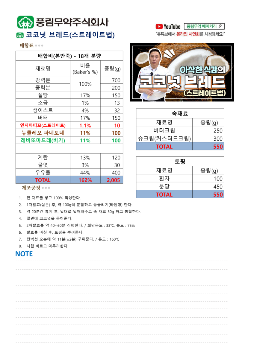코코넛 브레드(스트레이트법) / 풍림무약 온라인시연회(20210708) – 6부 / 장길찬 제과기능장(빠다롤 더 테라스 / 뺑 프랑스)