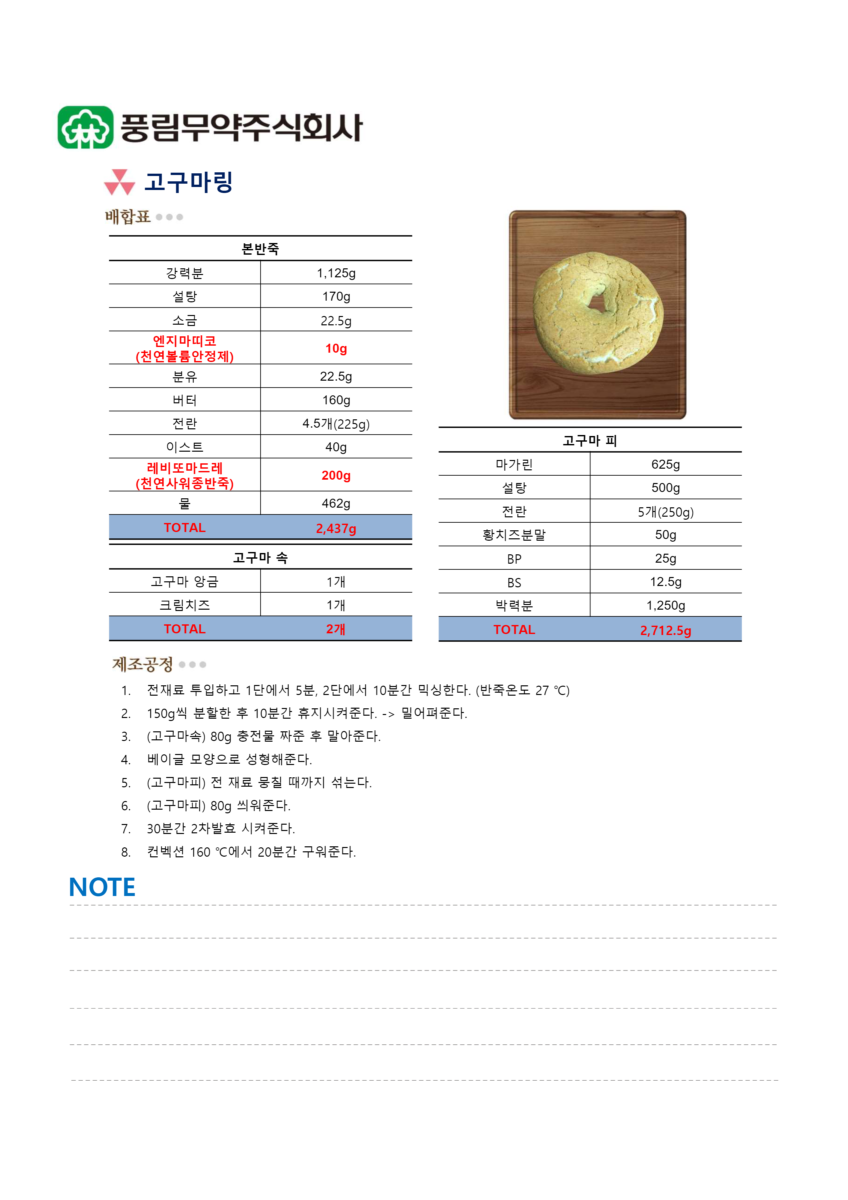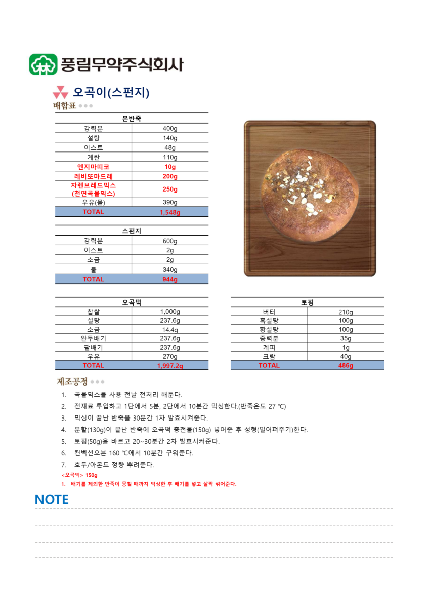 2016년 05월 24일 – 충북 진천 방문 시연회 레시피입니다. 브롯, 오곡이(스펀지), 쌀모닝, 고구마링
