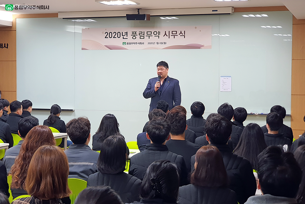 풍림무약 전 임직원들이 모인 가운데 신년사 발표 및 희망찬 도약을 다 함께 다짐하였습니다.