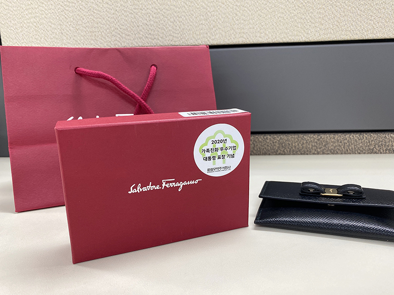 가족친화 우수기업 대통령 표창을 기념하여, 전 임직원에게 기념 선물이 배포되었습니다.
