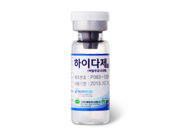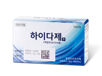 • 피하주입 시(대량피하주사) : 이 약 1,500 I.U.를 주사용수나 생리식염주사액 1mL에 녹여서 피하주입을 시작하기 전에 해당부위에 주사하거나, 주입을 시작할 때에 주입용 바늘에서 2cm 가량 위쪽의 튜브에 주사한다. 수액 500~1,000mL 투여 시 이 약 1,500 I.U.가 적당하다. 소아와 고령자에서는 수액제 투여시의 속도와 총 투여량을 주의깊게 조절해야 하며 특히, 신부전이 있는 경우에는 수분과잉이 되지 않도록 주의한다.