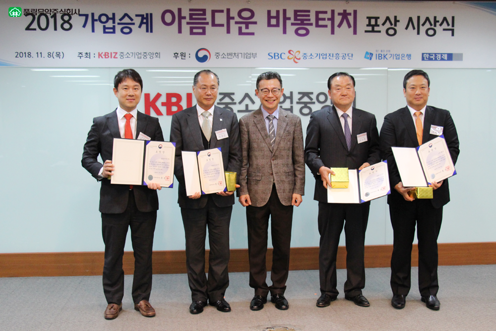 풍림무약, ‘2018 가업승계, 아름다운 바통터치’ 중소벤처기업부 장관상 수상